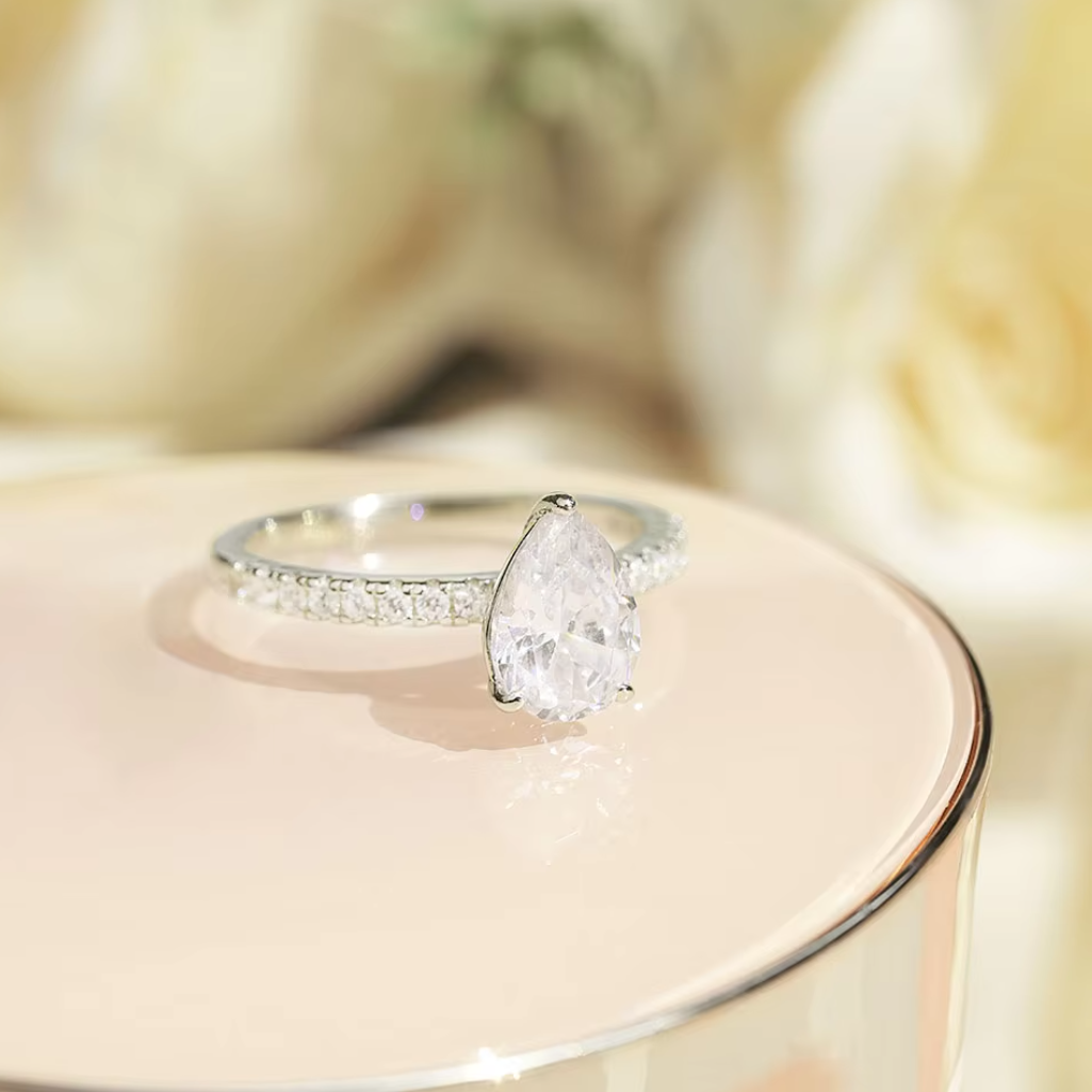 🔹 2CT Pear Moissanite: Tear-shaped brilliance with a message behind it